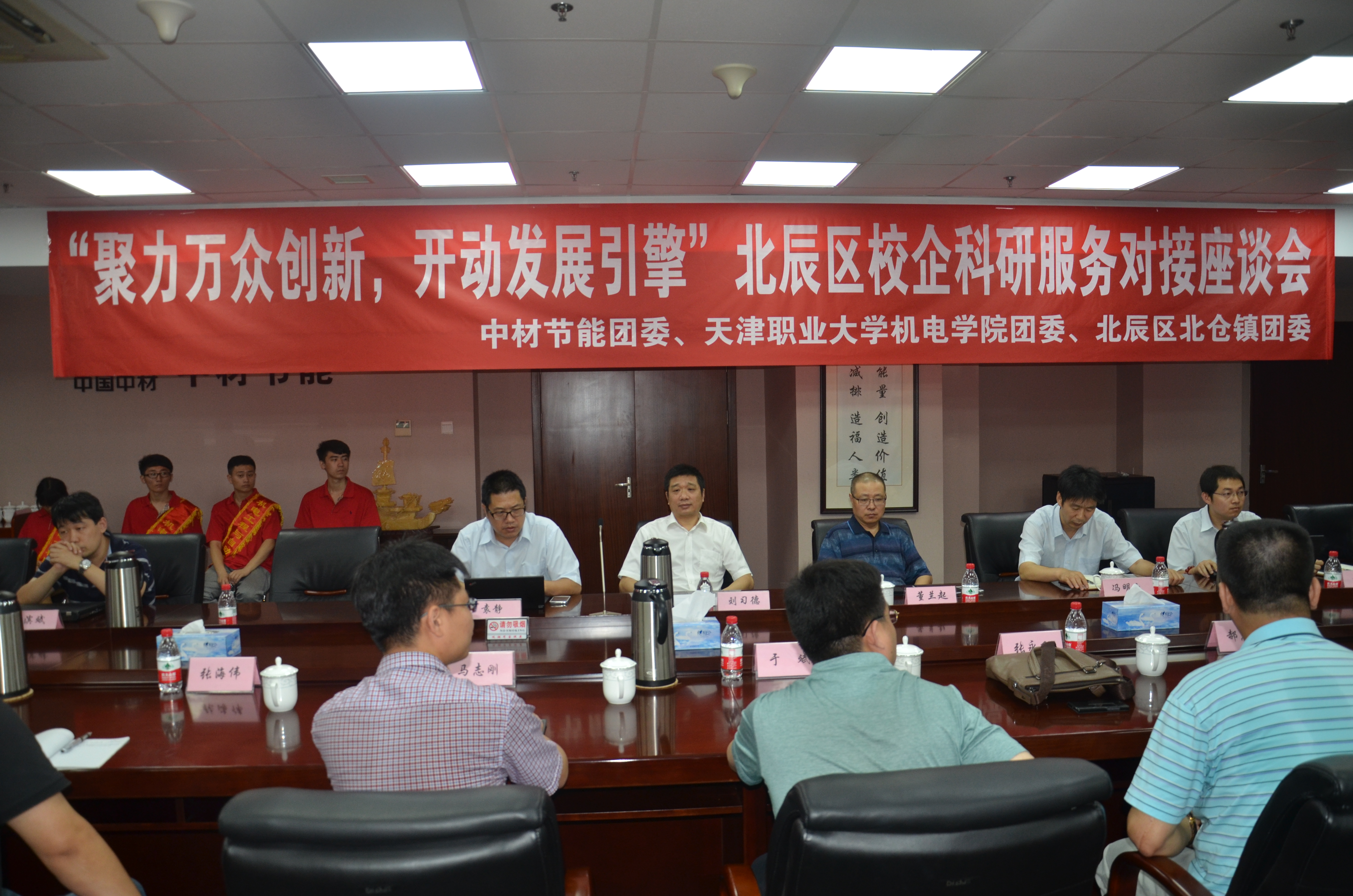 近日,由中材節能團委、北辰區團委、天津職業大學團委聯合組織的“聚力萬眾創新,開啟發展引擎”---北辰區校企科研服務對接座談會在中材節能21樓會議室召開。北辰區團委書記于斌、副書記馬志剛,天津職業大學機電學院副院長張永飛,公司黨委書記劉習德、總工程師董蘭起等參加了會議。
