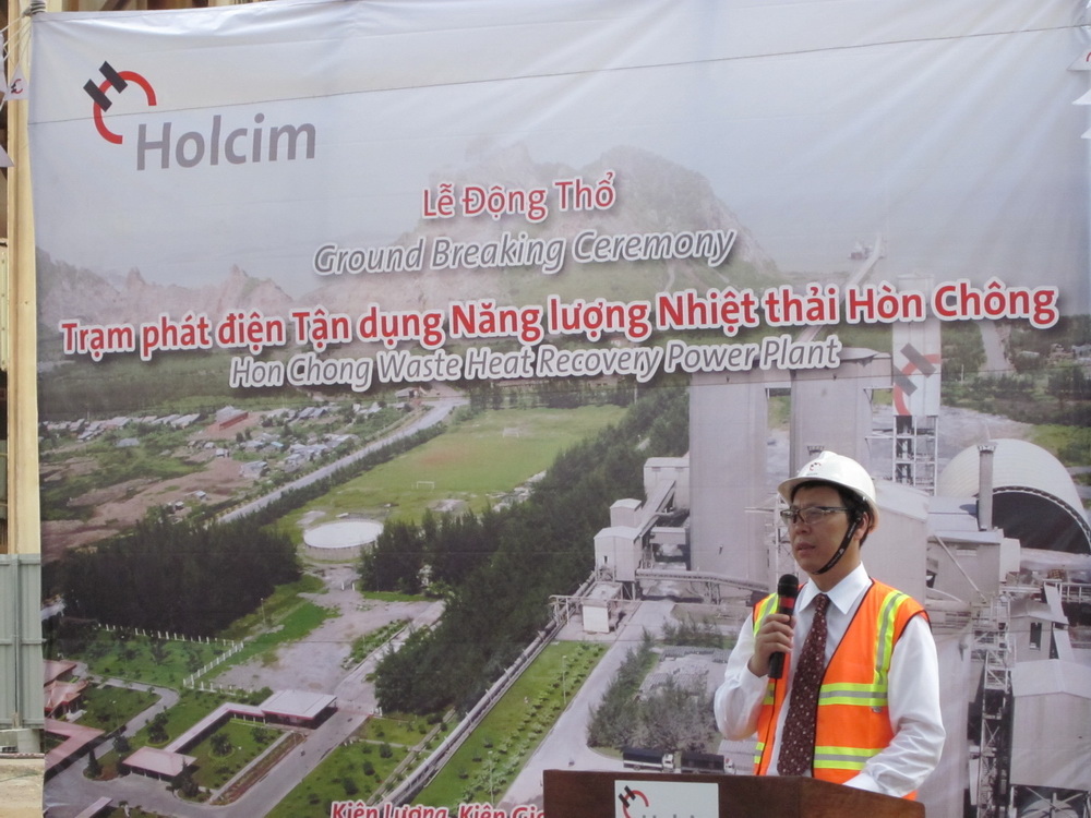 Subsequently, the President, Mr. Hu Yeming , gave a impassioned speech , firstly he on behalf of the Sinoma-EC to express his warm congratulations to the groundbreaking of Vietnam Holcim WHR, and express his sincere appreciation to all sectors of society. In the meanwhile he sincerely hopes that the successful complementation of this project will play a promotive role for Chinese and Vietnam friendship. He also reviewed the cooperation history between Sinoma-EC and Holcim, and certainly appreciate the mutual trust built by both sides. President Hu also said that , through the unremitting efforts of all Sinoma-EC staff, and under the active coordination of Hon Chong Cement plant of Holcim group, and also with the powerful support of vietnam government, Sinoma-EC will certainly hand over a satisfactory project to Holcim and vietnam government.